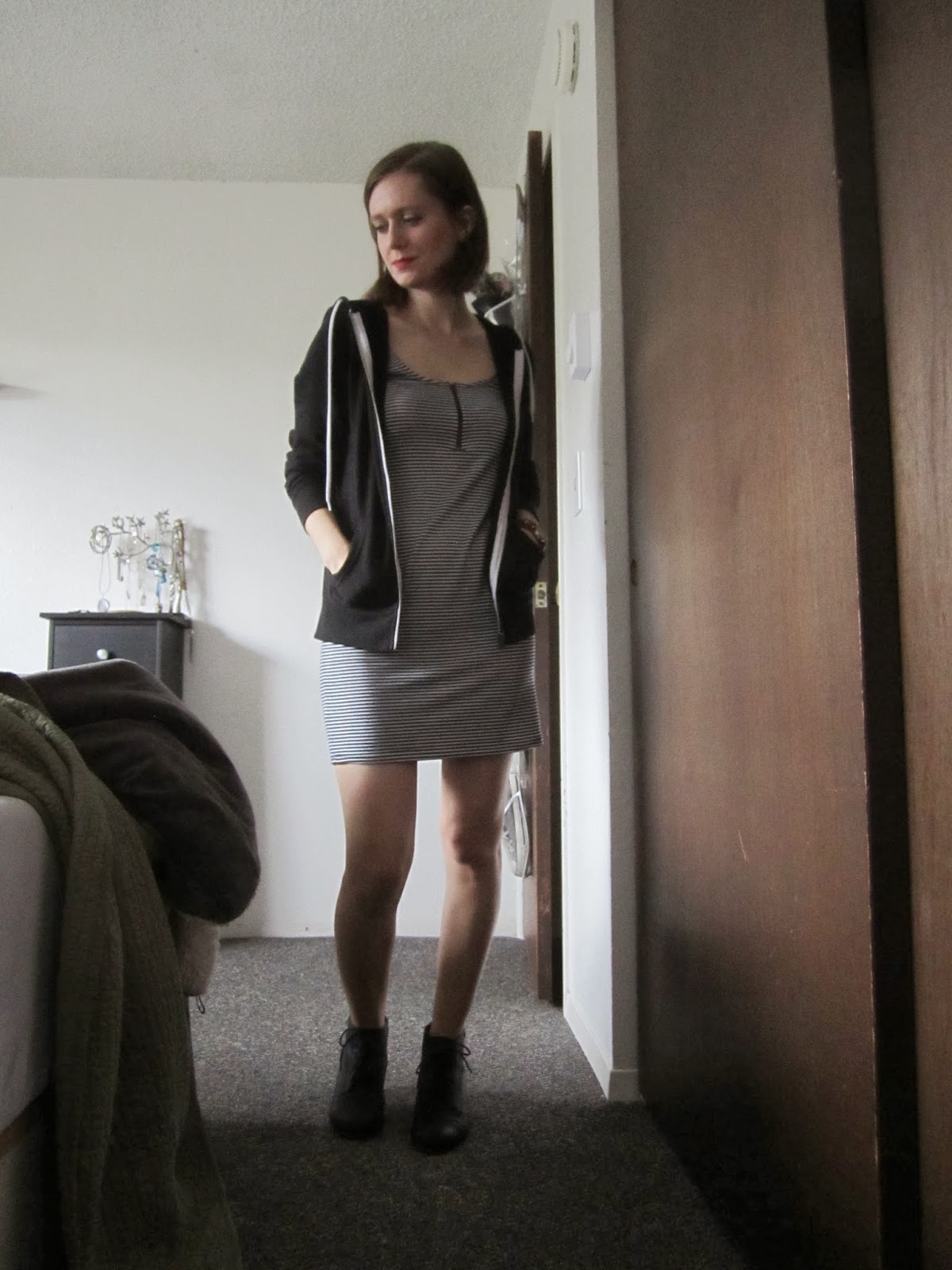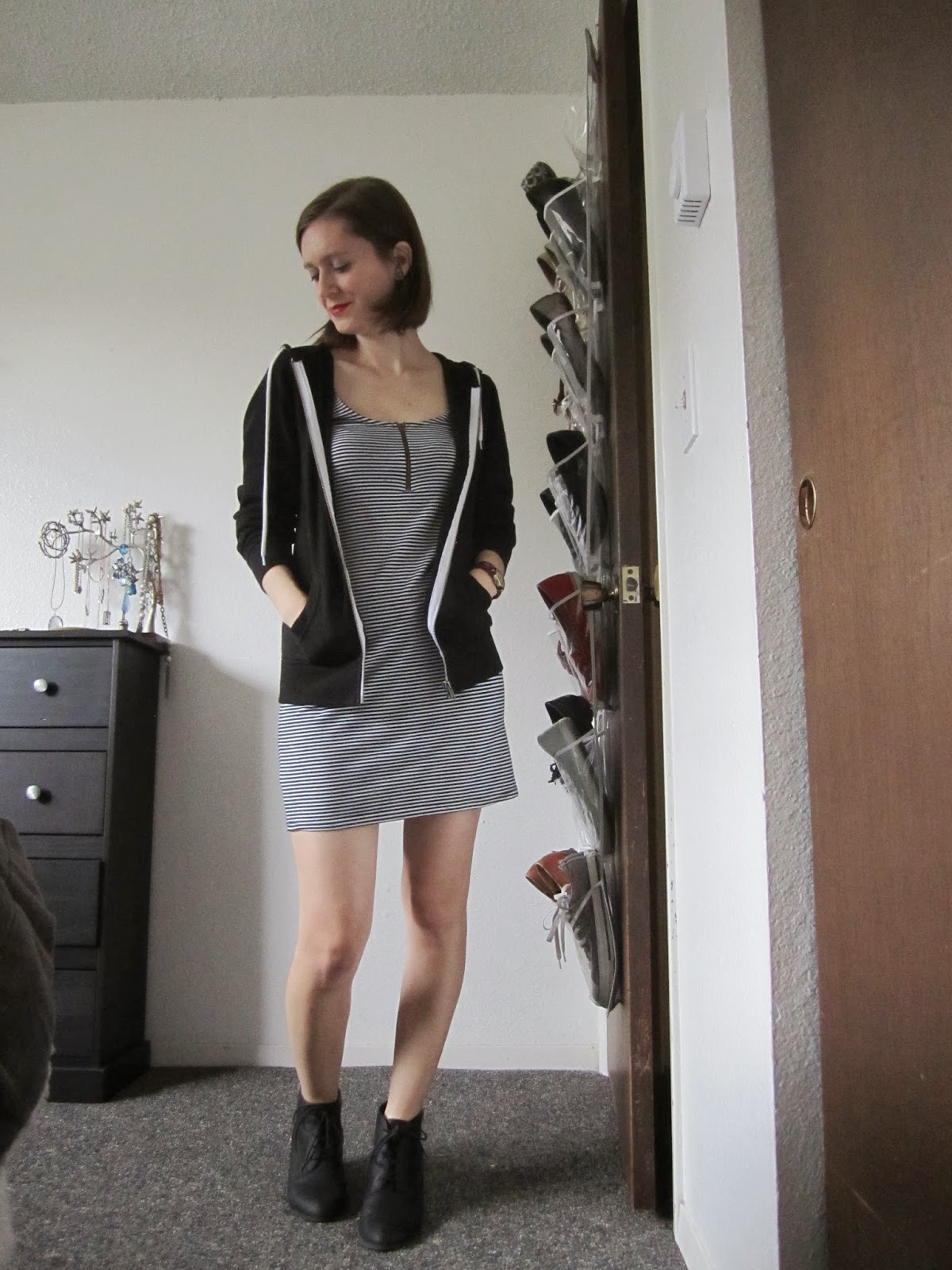 I'm still working on how to style these jeans I bleached, especially since the stretchiness of the material is not as strong in the very bottom of the leg, and they are a bit loose around the ankle, which bothers me. Rolling them works with certain shoes, and they go nicely with these yellow high tops I got on my honeymoon two years ago and have only worn a handful of times. The bleached look gives me some of the same hesitation of the bleached jacket I also recently acquired. Is the light color meant for spring and summer only? Can I wear it in the fall/winter without looking completely seasonally inappropriate? Good thing I care only a little about such questions, because sometimes and over-examined wardrobe can be worse than an under-examined one. Style should be fun, not work, and while I might take clothing a bit too seriously now and then, I'm always happier when I go with my instinct instead of playing by the "rules."